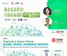 淨零永續,是臺灣企業發展的新動能。 代表臺灣產品最高品質及形象的「台灣精品 (TAIWAN EXCELLENCE) 」,將參加10月12日至14日在吉隆坡會展中心舉行的馬來西亞國際綠色科技環保產品展(IGEM 2022),展出10家廠商11個創新品牌,並訂於9月28日與10月5日舉辦兩場線上論壇,透過主持人與講者的對談,深入了解台灣精品得獎品牌的環保創新路程與永續思維。