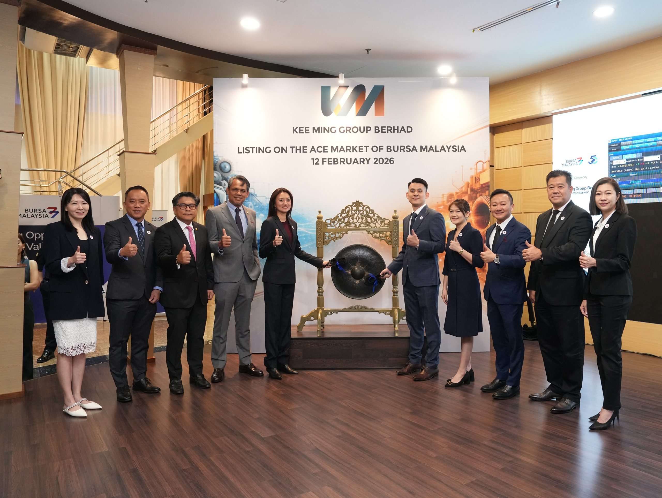 机械与电气(“M&E”)工程解决方案提供商基明集团有限公司Kee Ming Group Berhad或“该公司”)今日正式登上马来西亚证券交易所创业板,以每股79仙开盘,较其首次公开募股(“IPO”)每股38仙的发售价溢价107.89%,反映投资者对基明集团技术实力、项目执行能力与长期发展前景的高度信心。