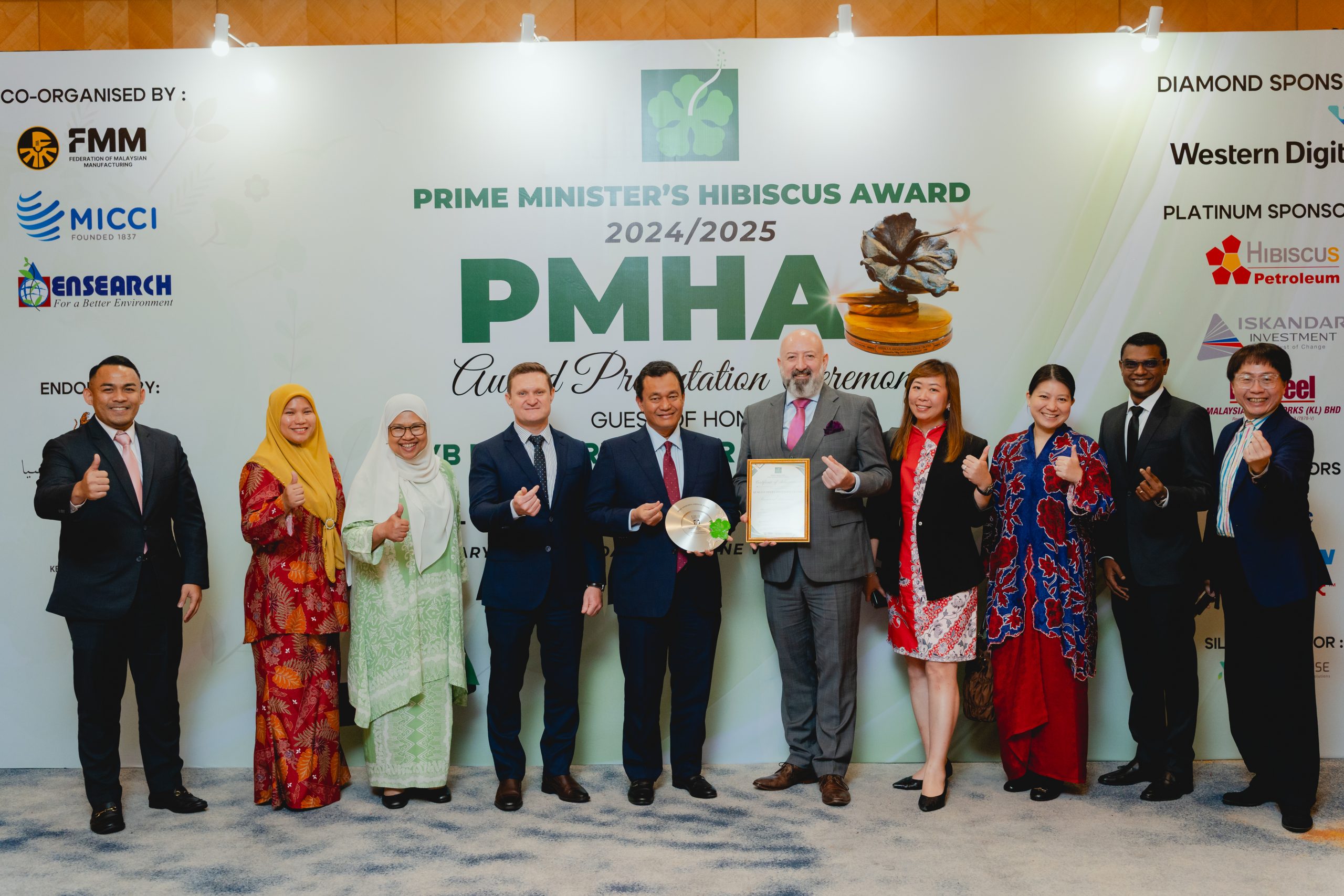 作为国家级环境卓越表现的权威标杆,Prime Minister’s Hibiscus Award 专门授予在环境与可持续发展管理方面展现持续卓越表现、稳健治理架构及高度透明度的机构。所有得奖单位均须经过极为严谨的提呈程序及由独立评审团主导的实地审核验证。